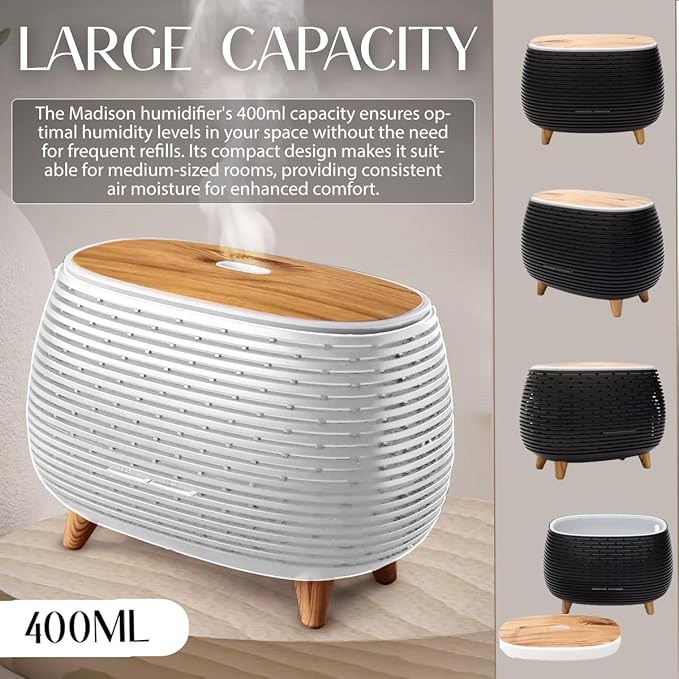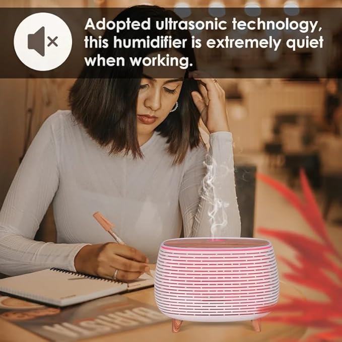 Diffuser, Ultrasonic Humidifier with LED Lights, Silent Operation, Black (White)