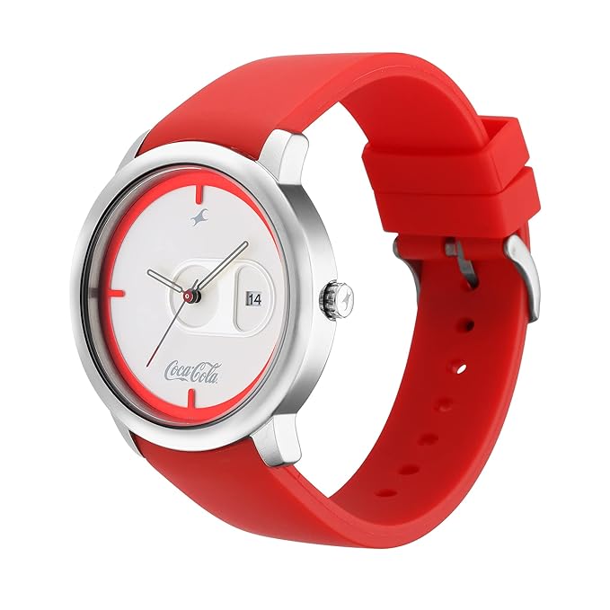 Fastrack Men Polyurethane Coke Analog White Dial Watch-3263Sp01, Band Color-Red.