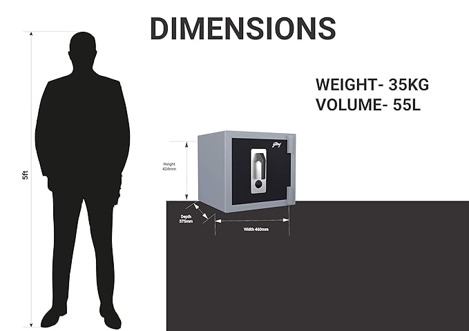 Godrej Security Solutions Forte Advance 100 X Stronger 55 litres Locker for Home & Office with Mechanical Key Lock (Light Grey & Black)