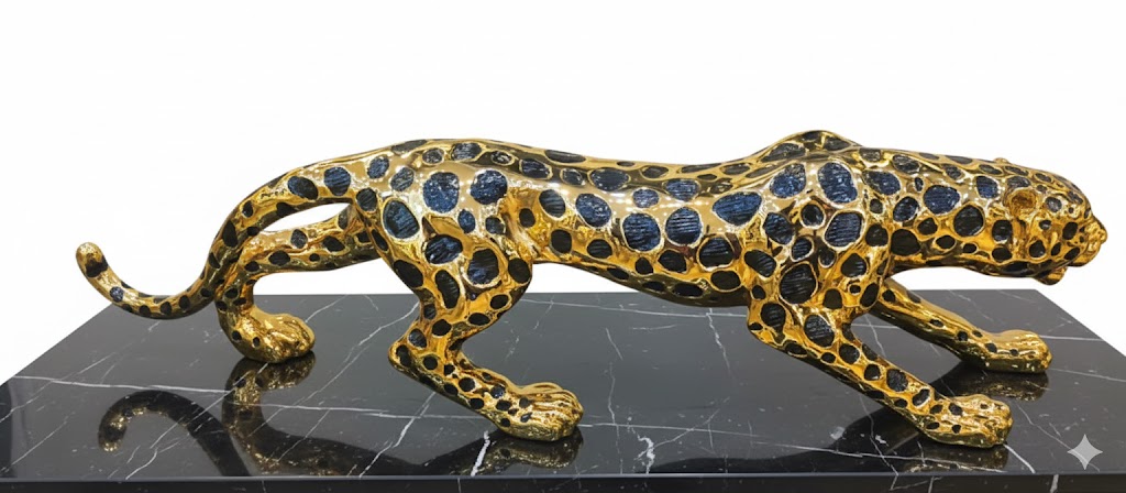 Golden Azure Leopard Figurine in High-Gloss Finish