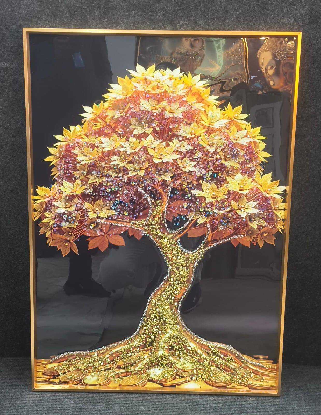 Golden Money Tree Crystal Porcelain Wall Painting.