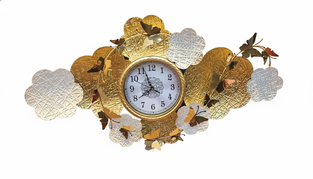 Luxurious Golden Butterfly Wall Clock with Floral Accents.