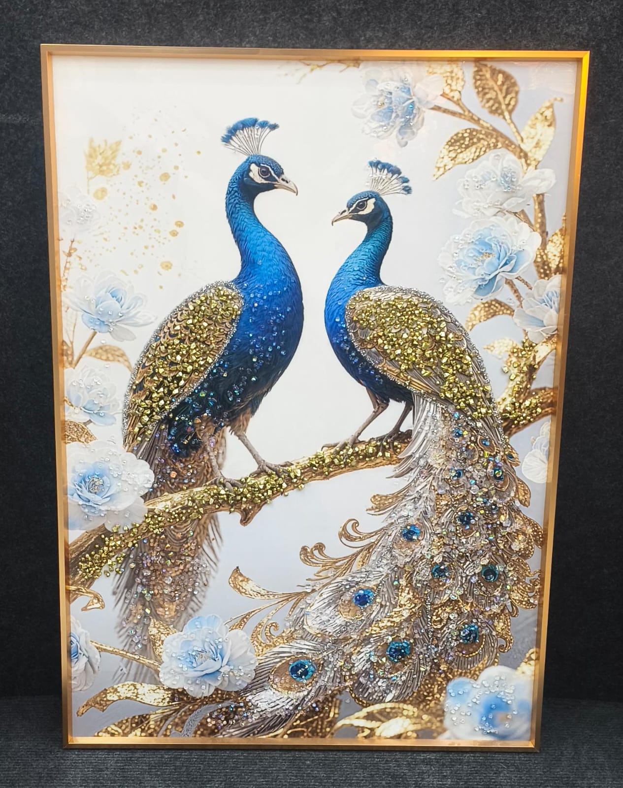 Luxury Crystal Peacock Pair Wall Art – Golden Frame