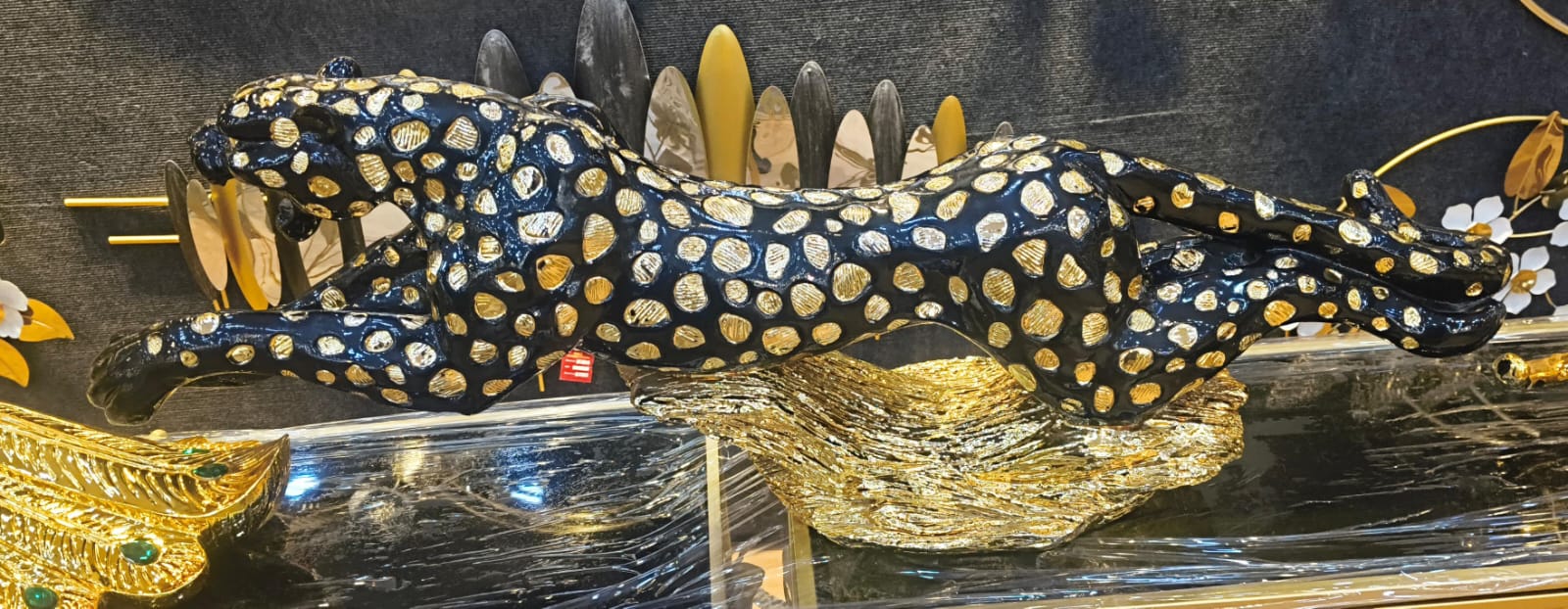 Majestic Golden-Dotted Panther Sculpture