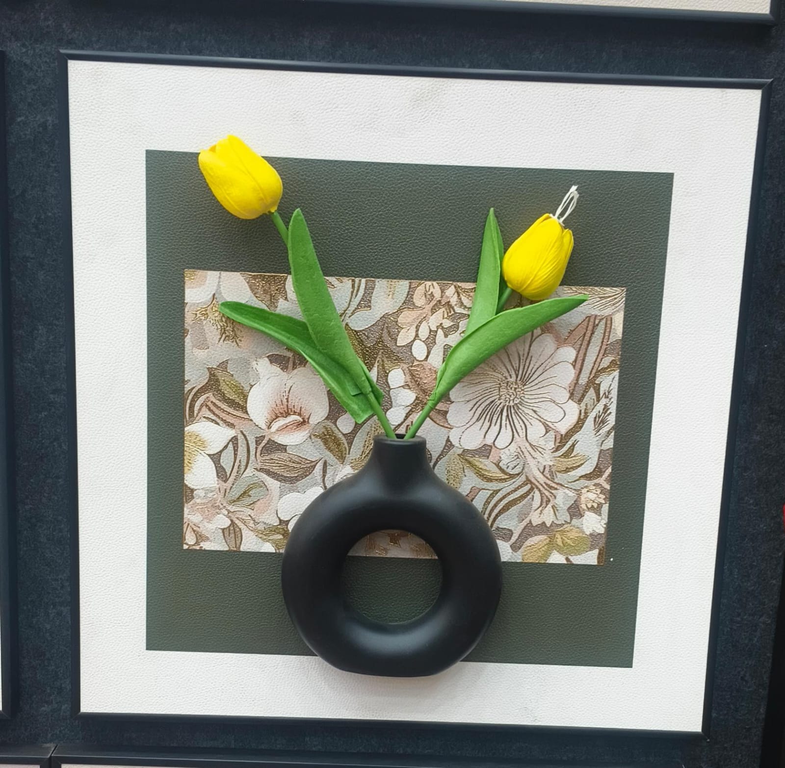 Elegant 3D floral wall art with yellow tulip flowers