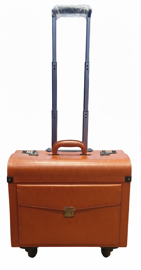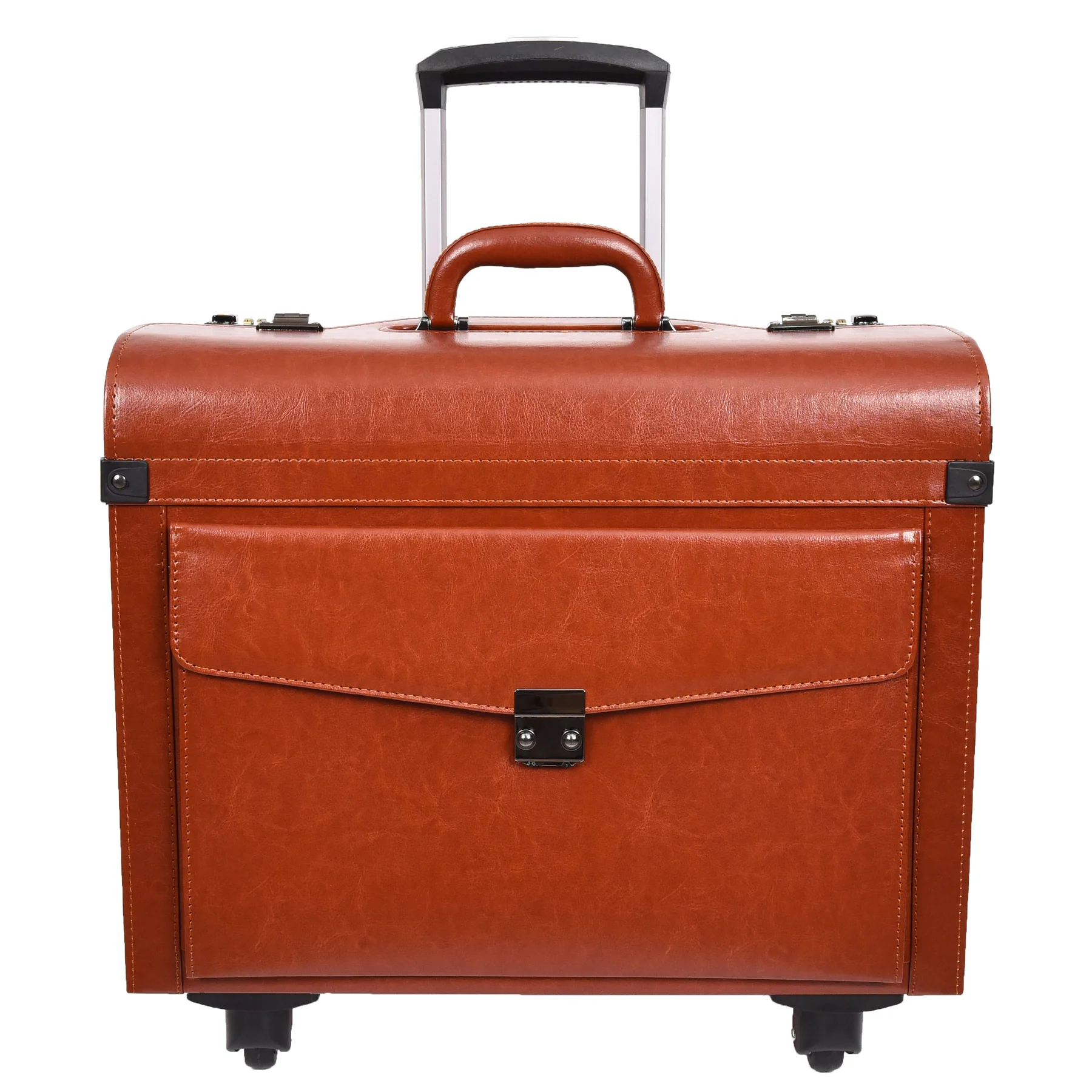 Pilot Case Faux 4 Wheels Cabin Size Dual Lock Business Travel Bag Aero Tan