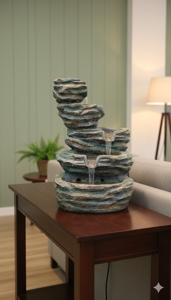 Multi-Tier Cascading Flow: Water flows gracefully through 5 distinct levels, creating a mesmerizing visual and a calming auditory experience.