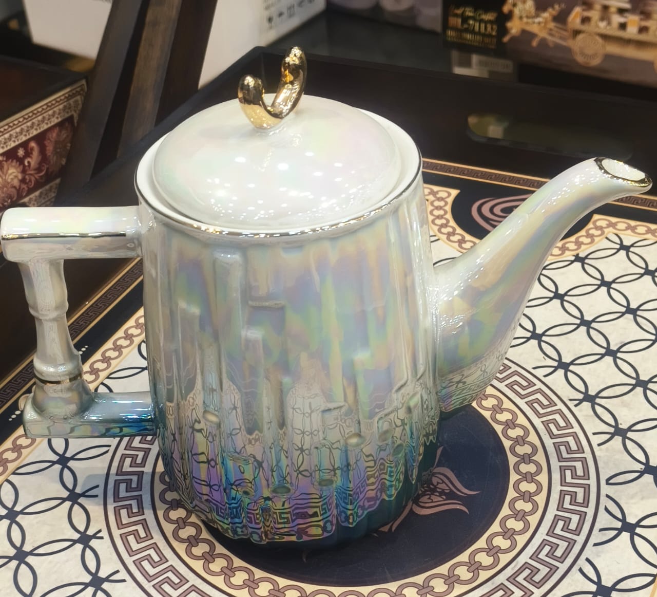 REVOLVING FLORAL PORCELAIN TEA SET-KETTLE & CUPS FOR MODERN HOMES