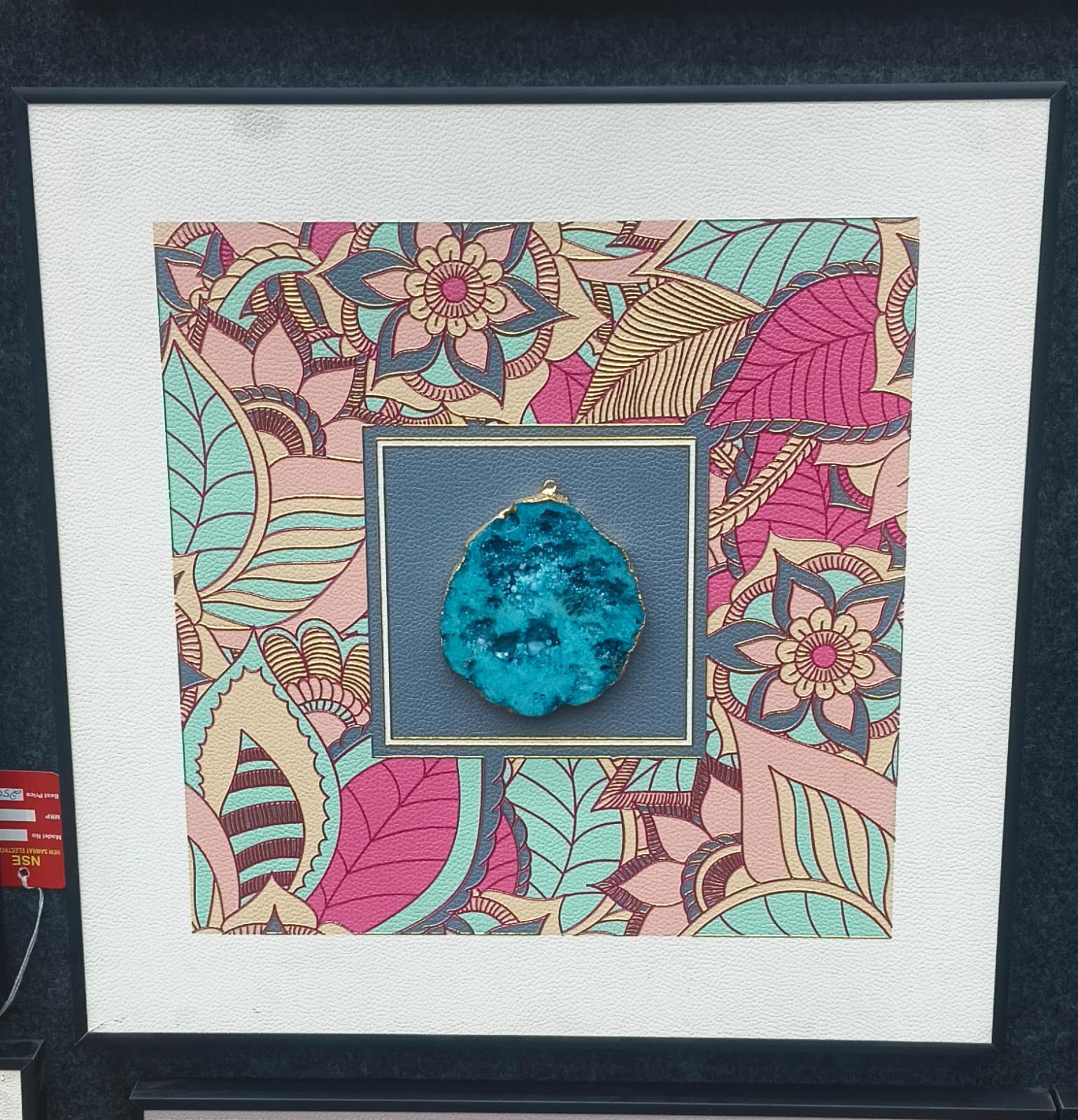 Turquoise Geode Stone 3D Wall Art Frame – Luxury Botanical Pattern Edition