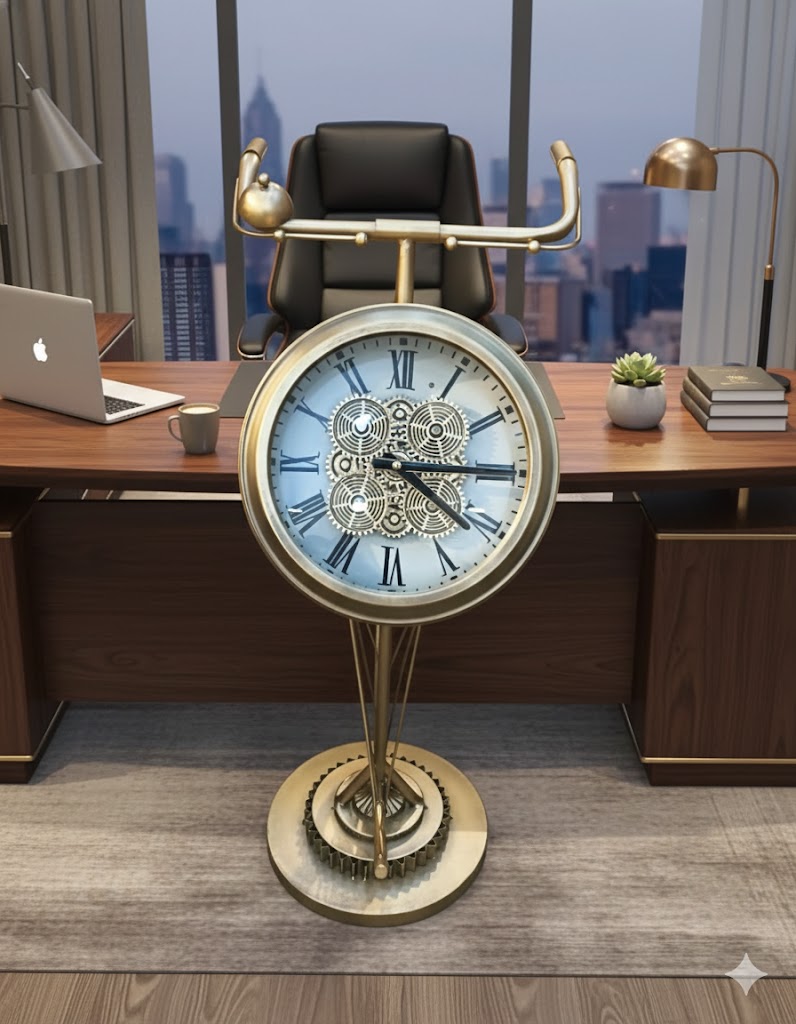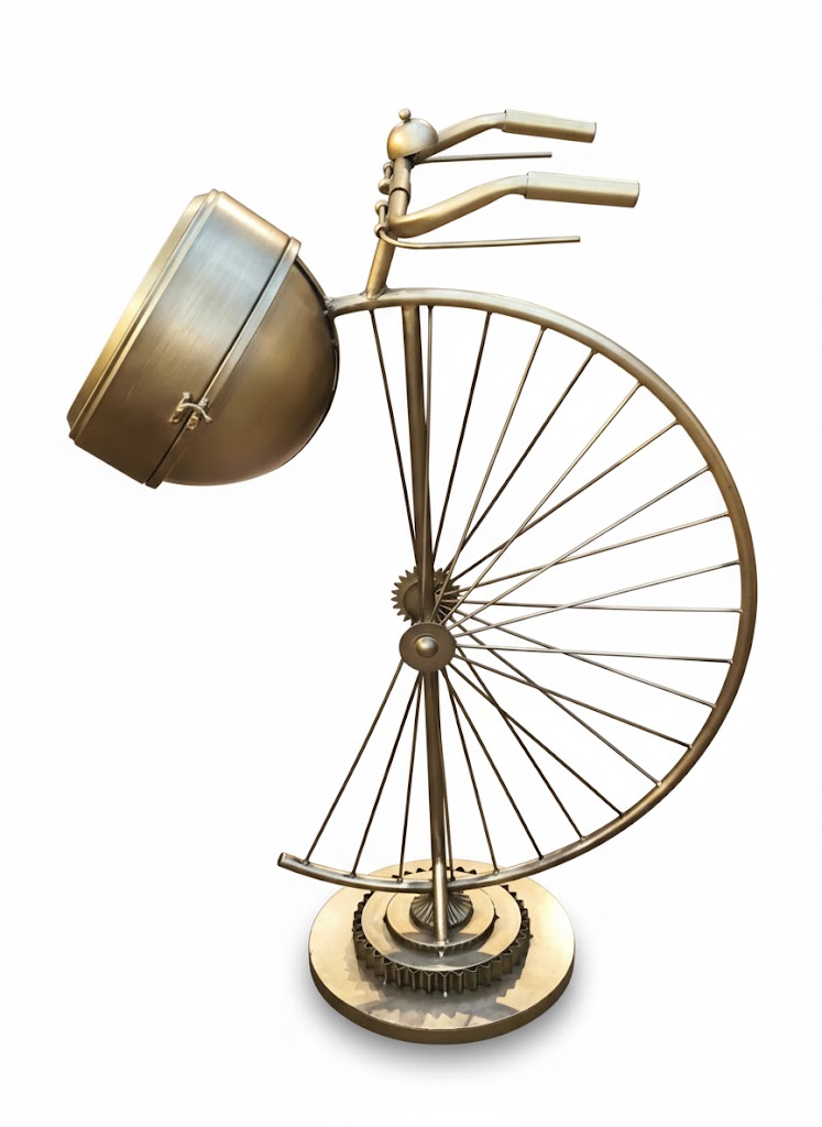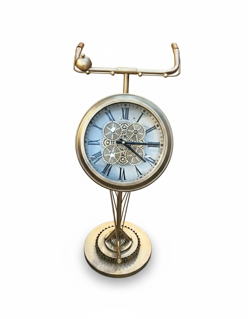 Unique Design: Features a stunning bicycle handlebar top and a gear-inspired pedestal base.